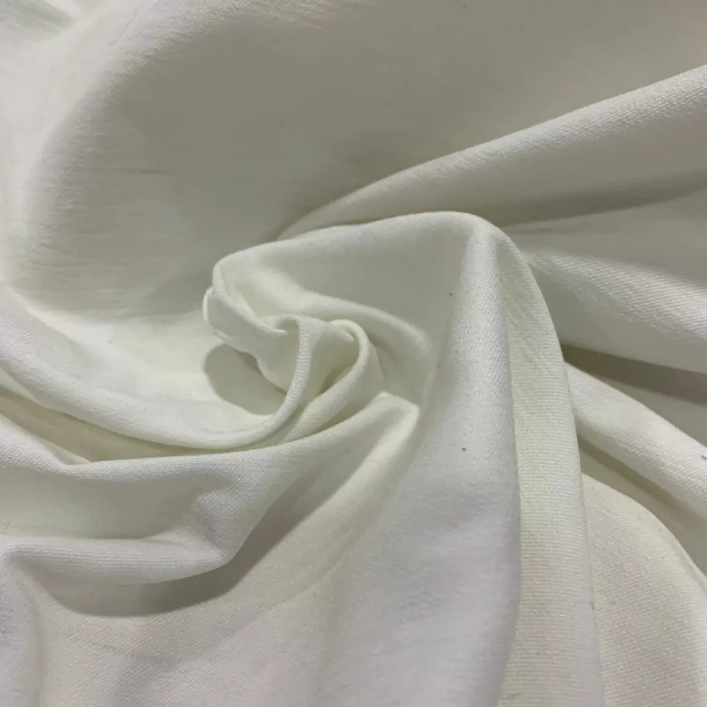 Es una tela semi gruesa, con su elasticidad en el largo de la tela muy pedida por confeccionistas que realizan prendas al cuerpo.