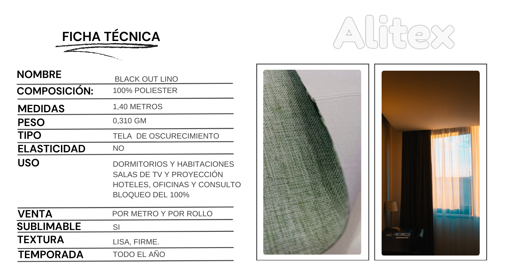 La tela Black Out textil Lino es la solución ideal para quienes buscan oscurecimiento total, privacidad y control térmico en interiores. Diseñada especialmente para cortinas y ambientación, bloquea el paso de la luz de manera eficiente, ayudando a crear espacios más confortables tanto de día como de noche.