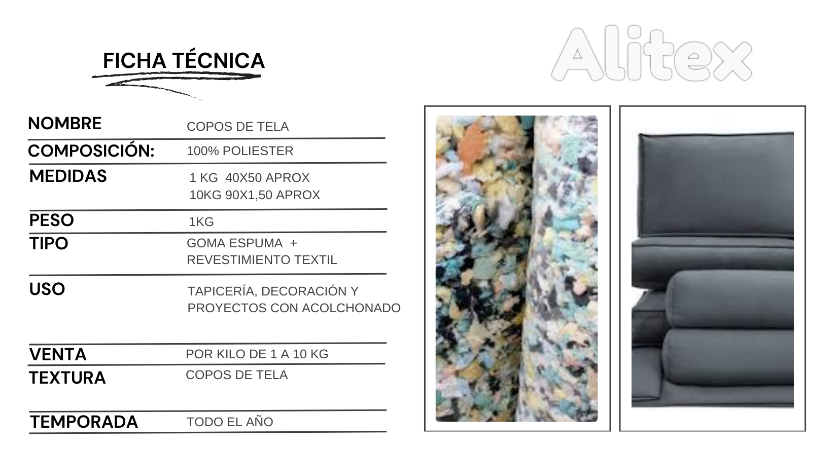 Es utilizado tanto para trabajos de tapicería ligera, como también en decoración, acolchonados, rellenos de asientos, reposeras, almohadones y piezas decorativas.