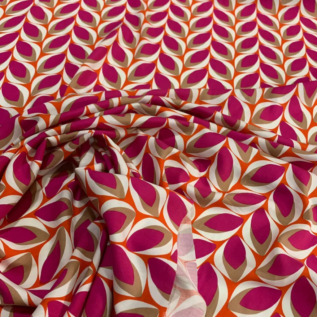 Rayón 100% producto premium. Se la conoce también como rayón poplin estampado. Su composición de rayón 100% esto hace que tenga menos encogimiento al lavar que una fibrana normal.